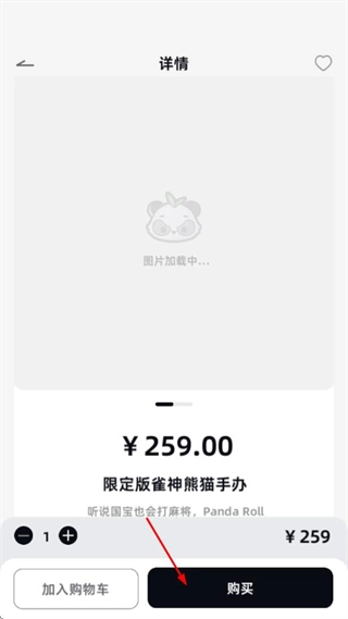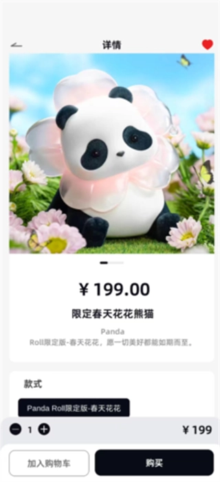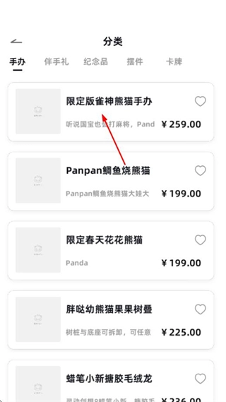 在限定版雀神熊猫手办所在的手办分类商品列表页面,点击该手办即可进入其商品详情页面。
