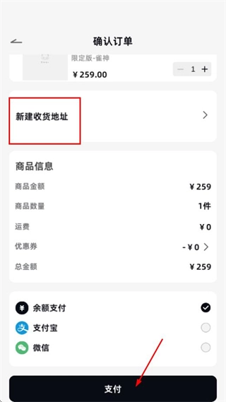 在订单确认页面,先添加新的收货地址,接着挑选支付方式,最后点击支付按钮,就能完成整个购买流程。
