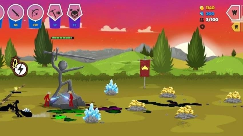 《火柴人战争荣耀》正版是一款策略类单机游戏。作为王国的领导者,你需要带领麾下将士四处征战,逐步拓展领土范围。游戏的每个章节都会解锁相应的剧情节点,你得抓住合适的挑战时机,以此获得应对考验的优势。 在游戏中,你要指挥火柴人部队开采黄金、修习剑术,还能通过拖拽操作让他们完成挖矿、砍伐等资源采集工作。战斗时,需根据战场实时局势,及时生产更多士兵并指挥他们发起进攻,最终目标是摧毁敌人的雕像,夺取所有领土。 训练火柴人士兵时,要留意他们的具体属性,合理设置步兵、骑兵、弓兵等不同兵种,让每个兵种都能充分发挥自身特长,在战场上奋勇杀敌,争取取得最理想的战果。