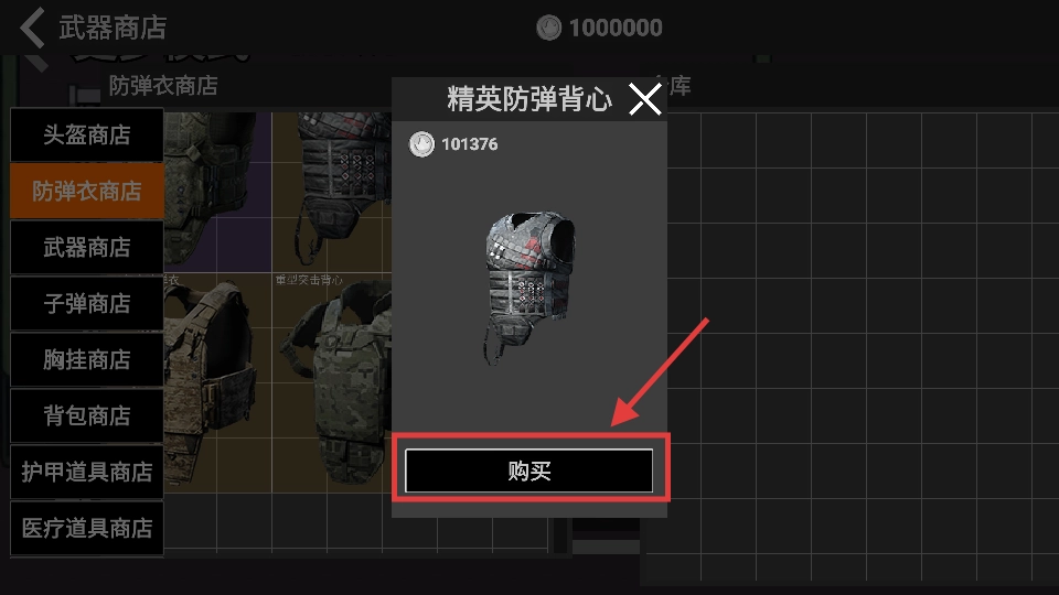 1、当你在防弹衣商店且金币足够时,建议购买【精英防弹背心】,它能有效提升你的防御能力,从而增强战斗中的生存力。