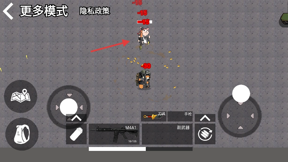 2、战斗过程中要灵活操控角色移动,避免和敌人正面硬刚,使用【M4A1】对敌人发起攻击,同时注意观察伤害数值,根据实际情况及时调整战术策略。