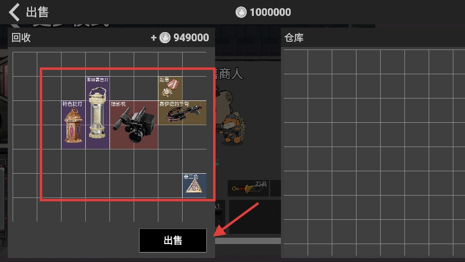 1、可以出售【特色灯具】-【摄影机】这类非必需道具来获取金钱,积累资金以购买更强大的作战装备。