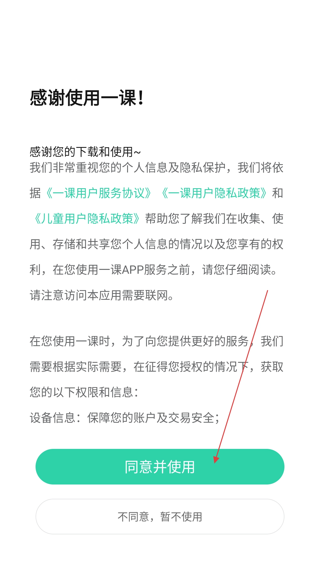 1、在协议页面,点击【同意并使用】,进入青少年守护页面。
