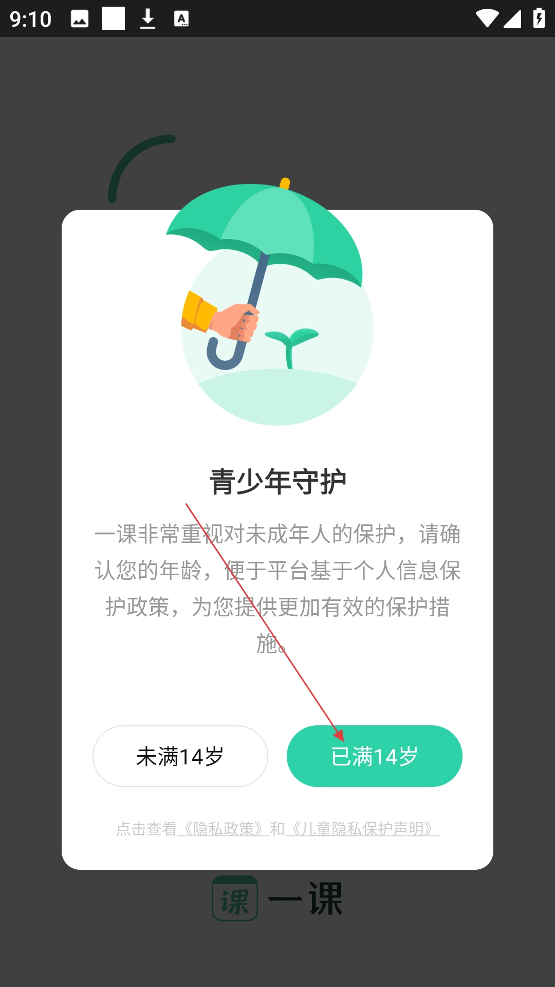2、在青少年守护页面,点击【已满14岁】,进入应用主页面。