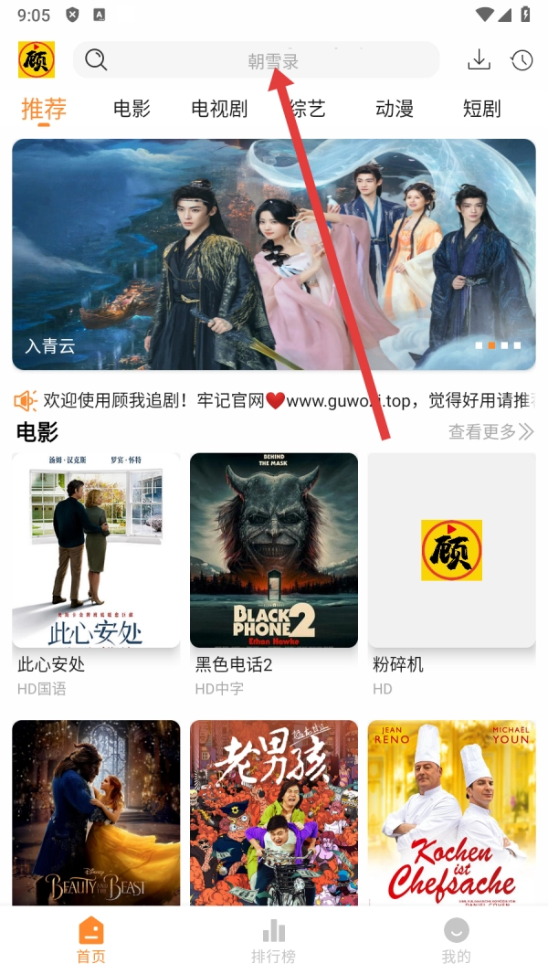 1、点击页面顶部的搜索栏,进入搜索输入界面。