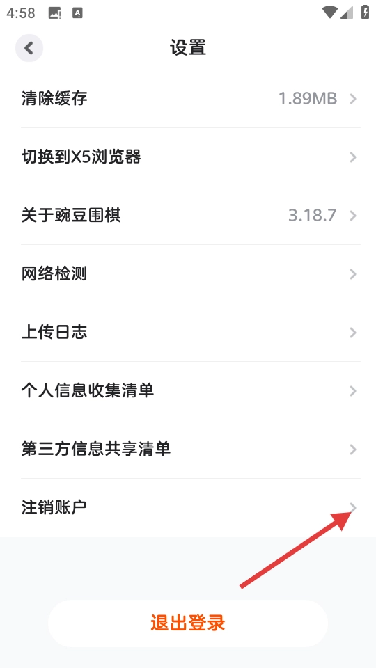 2、进入设置页面后,找到【注销账户】选项并点击。