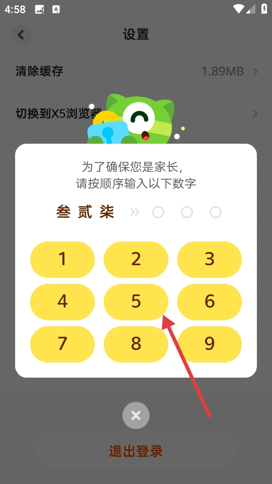3、根据提示输入【叁贰柒】所对应的数字3、2、7,以此完成家长的身份验证步骤。