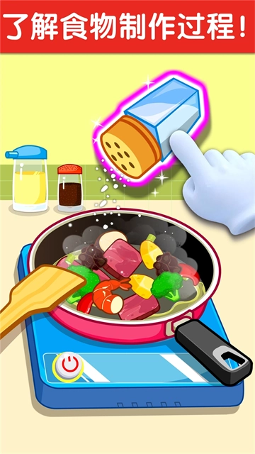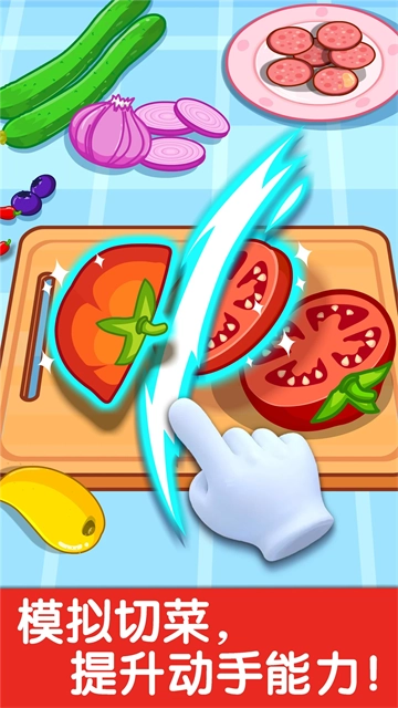 宝宝小厨房是宝宝巴士推出的一款面向2-6岁儿童的厨艺启蒙产品,既有趣味性又具备教育意义。游戏里有十多种卡通食材,还有多样的厨房操作形式,孩子能自由地切菜、炒菜、煮食、榨汁,在简单的操作过程中认识各种蔬果,感受烹饪的乐趣。它运用蒙台梭利教育理念,注重孩子自主探索、动手实践以及创造思维的培养,Q萌的画风和可爱的角色让孩子非常喜欢。游戏没有复杂的规则,也没有失败的设定,节奏舒缓,安全且,是一款让家长安心、孩子愉快的优质早教游戏。