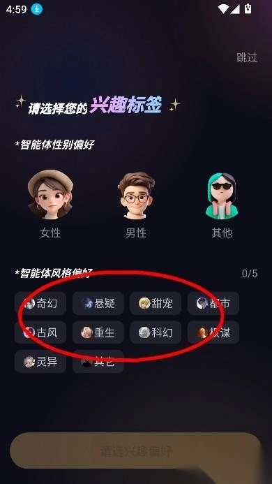 选择兴趣标签进入主页