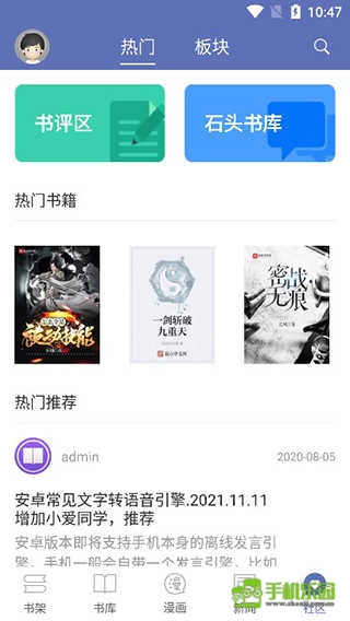 安装本站提供的石头阅读安卓版,进入软件后就能在书库中看到丰富的资源。