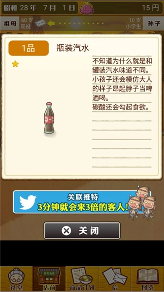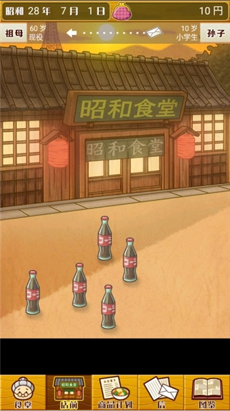 除了店内会有客人光顾,店门口也时常会掉落一些小物件,像奶糖、柠檬粉这类带着昭和时代印记的商品。点击回收这些物品,同样能获取硬币呢。