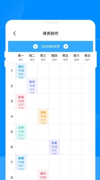 课程表制作:录入课程名称、时间、地点及教师信息,即可快速生成个人专属课程表。