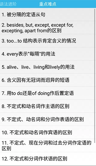 Grammar是一款十分实用的英语语法学习软件,它可以精准把握各个知识点,整合海量语法内容,助力用户掌握核心要点,同时提供在线课程实时解答疑问,帮助用户实现语法水平的提升。