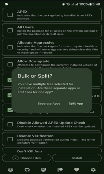 Install with Options是一款实用的工具类软件,主要功能是协助用户完成各类应用的安装流程。它的操作逻辑清晰直观,即使是新手也能快速掌握;同时具备纯净安全的特性,安装过程中不会对设备产生任何损害。该软件占用内存空间较小,能够适配市面上不同型号的手机设备,还支持APK拆分、批量安装应用等实用功能,让用户可以更轻松地完成软件安装操作。此外,它还提供个性化定制选项,帮助用户丰富设备的功能与外观表现,为用户带来舒适愉悦的视觉使用体验。