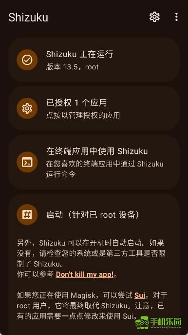 要是手机还没root的话,你可以挑选并启用Shizuku工具。