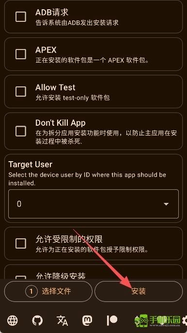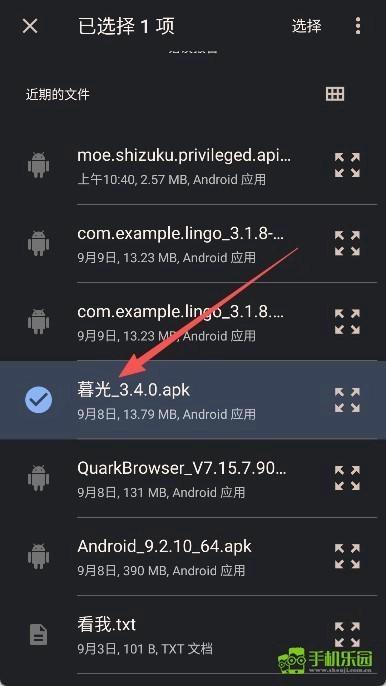 在弹出的文件选择器里找到并选中要安装的APK文件。
