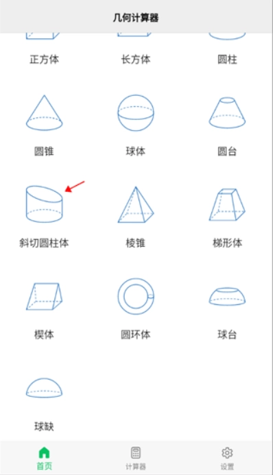 启动后,界面上会呈现出多种几何图形选项,从中选择集合体模型即可进入相应的操作界面,接下来我们以斜切圆柱体为例进行说明。