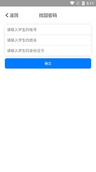 若要找回学生信息,需输入学生账号、姓名及身份信息,随后点击确定按钮即可。
