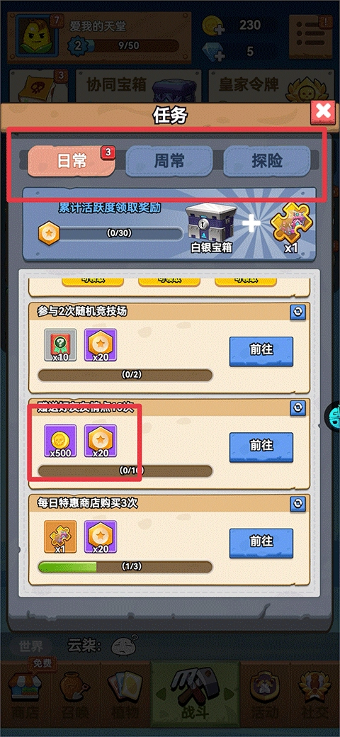 1、完成每日任务、周常任务及探索任务,即可获得丰厚金币奖励