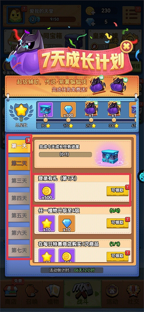 3、参与七日成长计划,每日签到领取包括金币在内的多重好礼