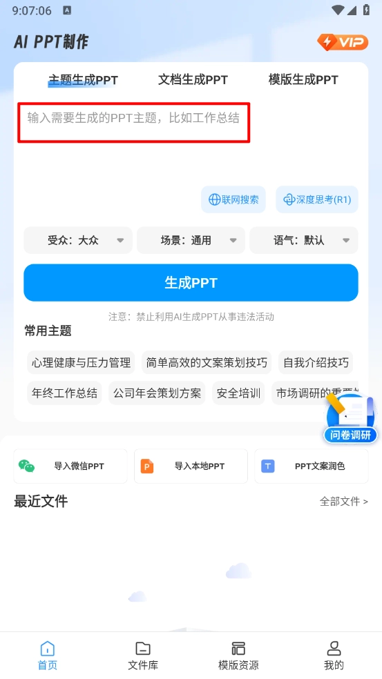 最后回到主页,切换到“文件库”板块,就能查看已经制作好的PPT了。