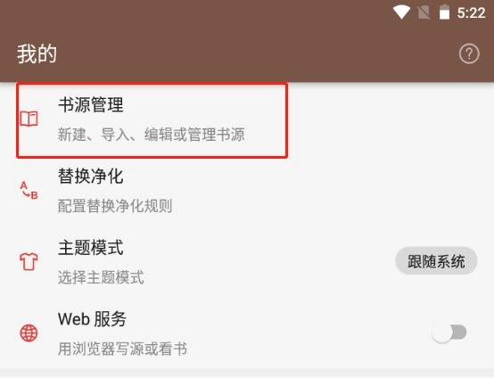 在“我的”中选择书源管理。