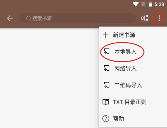 你可以这样操作:先点击右上角那三个竖着排列的点,接着选择本地导入选项。要是你有的是书源网址,那就点击下方的网络导入,之后把网络书源粘贴进去就能使用了。