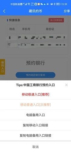 点击预约入口,选择极速入口进入(微信端无法进入)