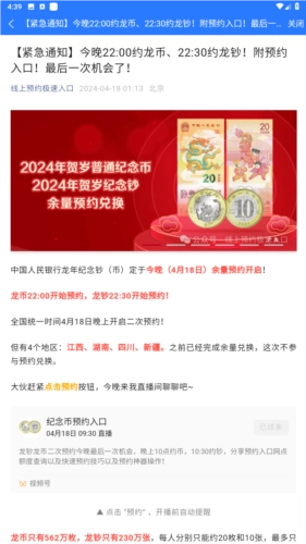 便捷的预约渠道:设有纪念币的线上预约通道及快捷预约方式,优化了用户线上预约的流程。