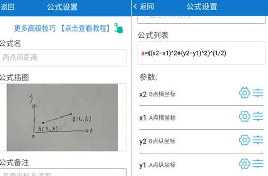 进入【自定义】页面后,点击新建公式选项。这里我们拿“两点间距离”来举例说明,它对应的数学表达式是:√[(x₂ - x₁)² + (y₂ - y₁)²]。我们设定A点的坐标为(x₁, y₁),B点的坐标为(x₂, y₂)。