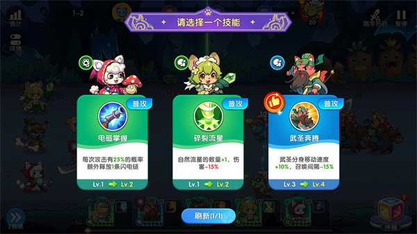 提升等级后,玩家能够挑选一项技能来增强自己的角色,而每次可供选择的技能均为随机生成的。