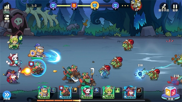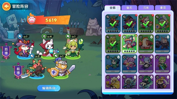 有许多猫咪英雄等待你挑选上阵闯关,各式各样的阵容组合任你自由搭配使用。