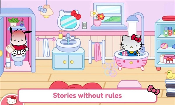 进入凯蒂猫的生活世界后,点击游戏屏幕就能开启这个世界的漫游之旅,只要点击任意一座房屋,就能进入其中探索。