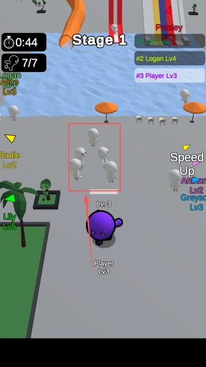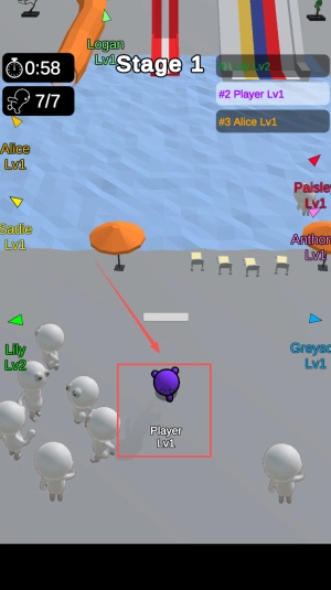 开启竞技准备:进入游戏后明确“吞噬壮大、击败对手”的目标,熟悉橡皮人的移动方式与吞噬规则,为即将到来的对抗做好充分准备。