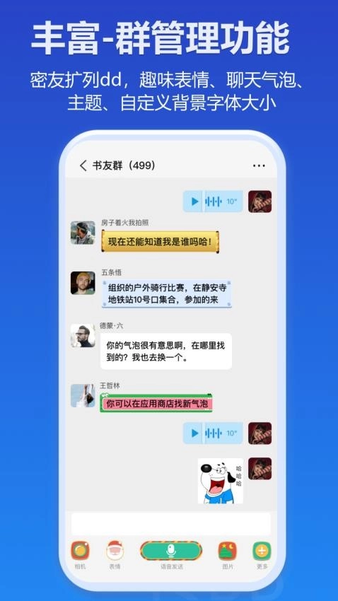 通过视频通话和朋友实时交流,能获得更真切的沟通感受。创建群组的功能让多人在线聊天变得便捷高效,方便随时和朋友分享近况与思绪。软件里有趣的表情包为聊天增添了趣味,让用户在交流时更轻松愉悦。还可以根据自己的喜好自定义聊天气泡和背景主题,充分彰显个性化的风格。