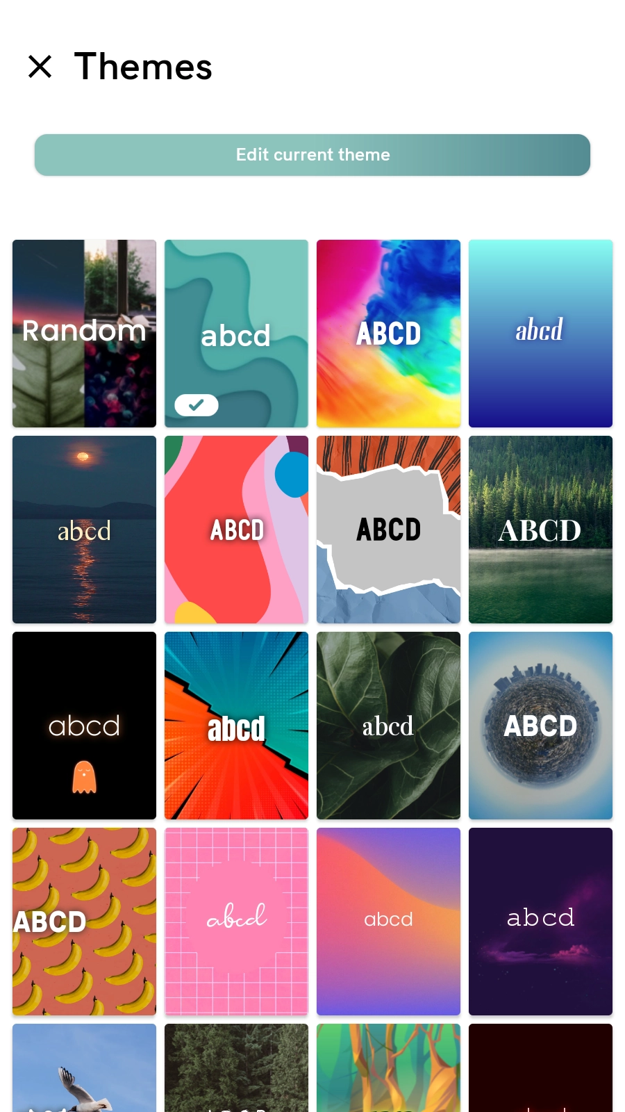 在【Themes】界面,你能够挑选像“abcd”这类主题样式,对显示主题进行个性化定制。