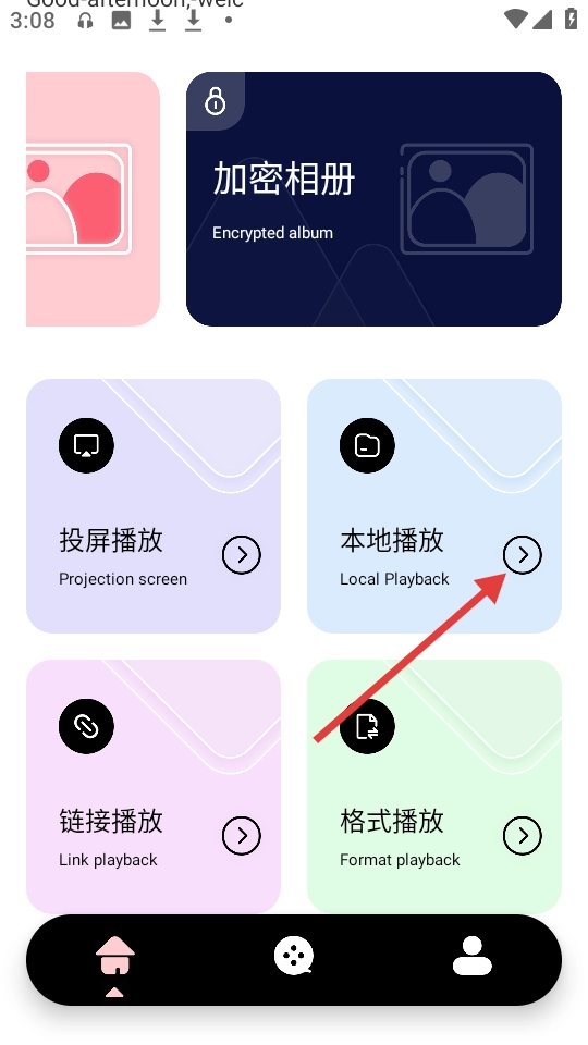 2、在主界面点击【本地播放】选项,进入视频选择界面。