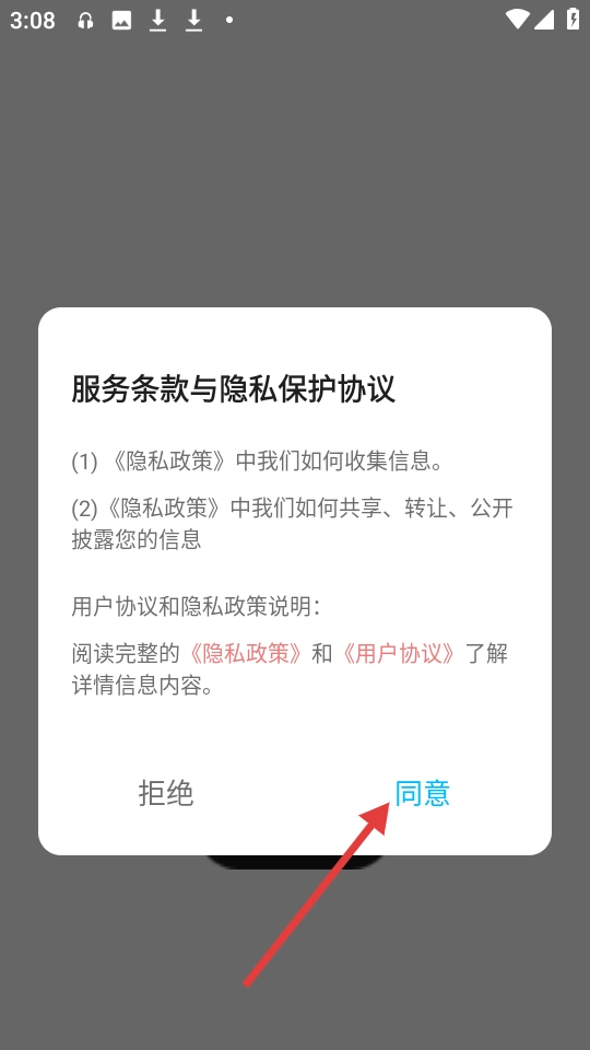 1、点击【同意】服务条款与隐私保护协议,进入应用主界面。