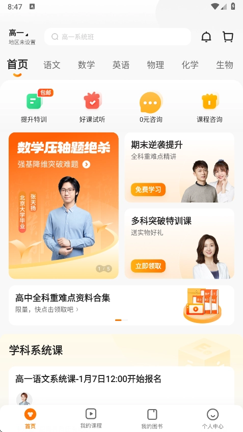 注意,各班课教辅工本费不一,详情可在报名成功后,于课程主页查看。