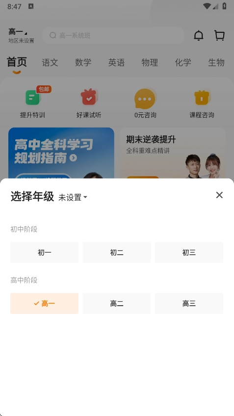 2.您可以点击左上角设置年级阶段