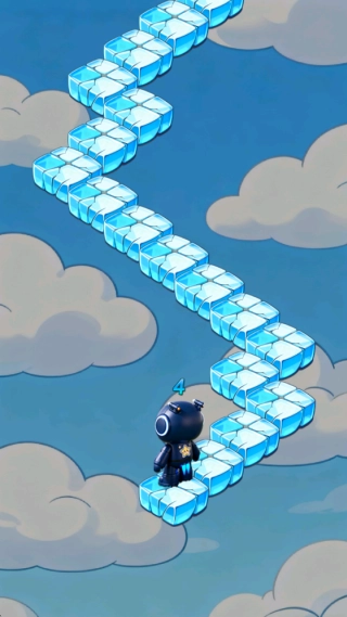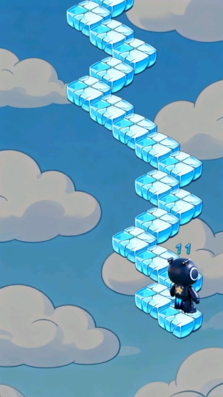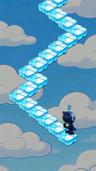1、进入游戏后,通过点击屏幕控制角色在悬浮方块上跳跃前进,并需及时转向,小心不要从方块边缘掉落。