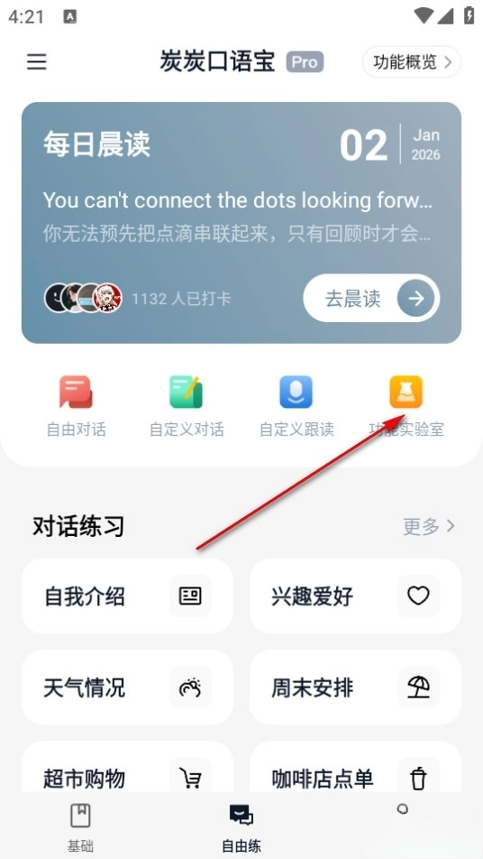 点击软件进入首页,在首页点击功能实验室。