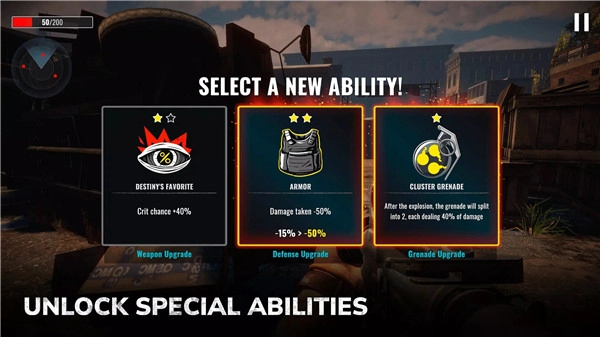 每关通关后挑选强力增益效果(比如“10秒无敌”或者“弹药量增加50%”),依据下一关的僵尸种类来调整应对策略。