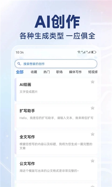 输入关键词后一键触发智能创作,既能为您供给创意灵感,又能助力您轻松完成写作。