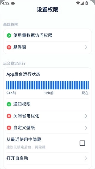 用户打开自律石头软件后,得先授予设置权限。