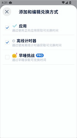 用户还可以设置自己想要的兑换方式,以此来增加使用时长。