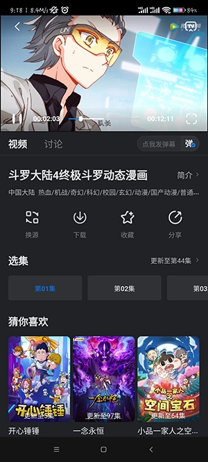 这里打开了一部老电影,功能依旧很齐全,能切换播放源,可选的数量还挺多呢,也支持发送弹幕、缓存影片、投屏观看,以及分享和收藏。