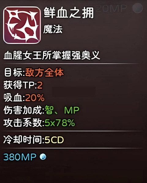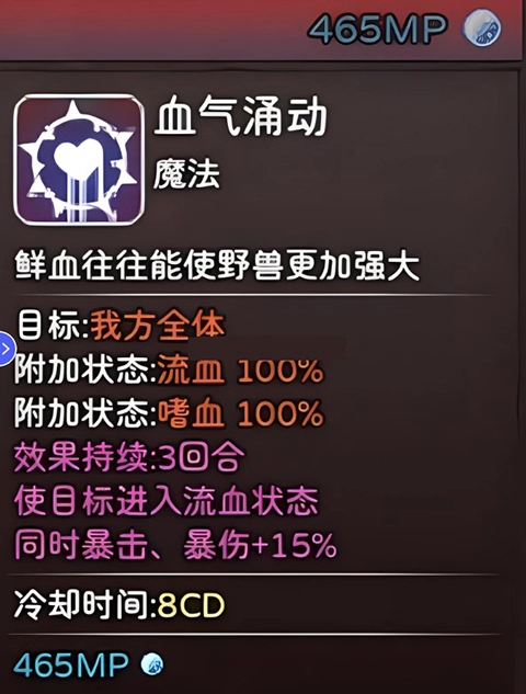 C位必备的核心技能,用少量血量的代价换取下一次行动时的高额爆发输出,搭配后续会提到的兴奋效果,能打出相当可观的爆发伤害,是C位一定要带的技能。