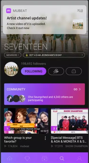 mubeat追星安卓版是一款专注于K-pop偶像追踪的粉丝互动平台,这里汇聚了全球K-pop明星的最新动态、打榜应援、直播互动等丰富功能,为粉丝们打造了一个能近距离接触偶像、和同好交流的专属追星空间,让粉丝可以实时掌握偶像的动态,并且参与到应援活动中。
