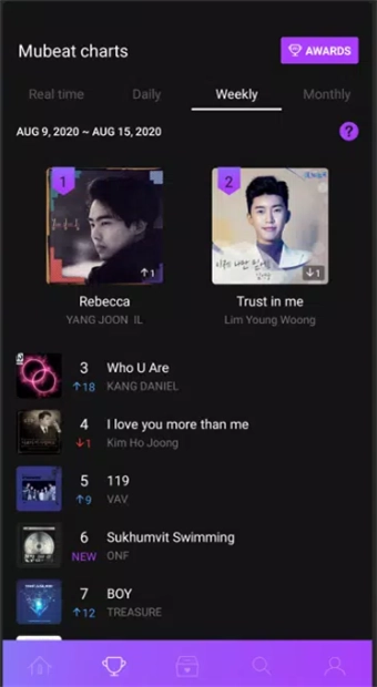 打榜应援与数据支持功能:平台设有打榜系统,粉丝能够通过完成指定任务来获取“爱心”道具,进而为自己支持的偶像投票助力;该打榜数据会直接对接韩国主流音乐节目的排名体系,粉丝的每一票都将直接作用于偶像的舞台排名情况以及获奖可能性,有效强化了应援行为的实际价值。